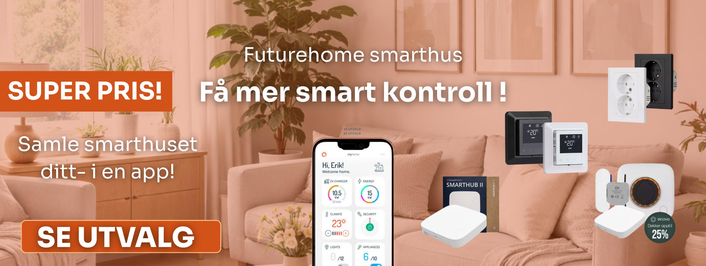 Kan kobles til Futurehome Smarthub for varslinger og status