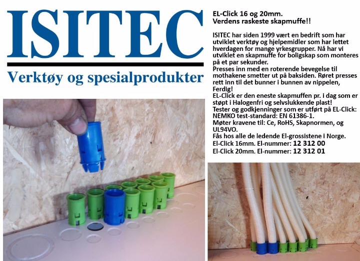 El-click er en nyutviklet skap-muffe for boligskap. Verdens raskeste skapmuffe!