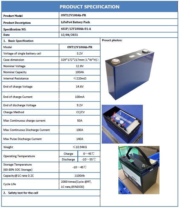 • 100Ah 12.8V