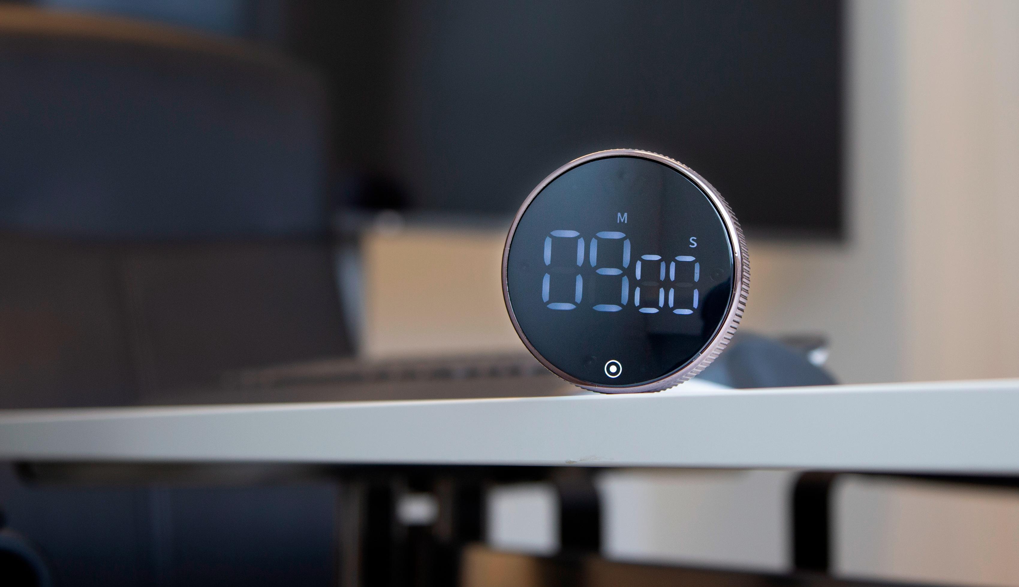 Enkel vri-betjening: Med sitt brukervennlige grensesnitt er denne timeren enkel å bruke for folk i alle aldre. Bare vri på hjulet, still inn ønsket tid, trykk på skjermen for å starte og la timeren ta seg av resten. Dens tydelige alarm vil varsle deg når tiden er ute, og sikrer at du aldri går glipp av en viktig deadline eller milepæl.