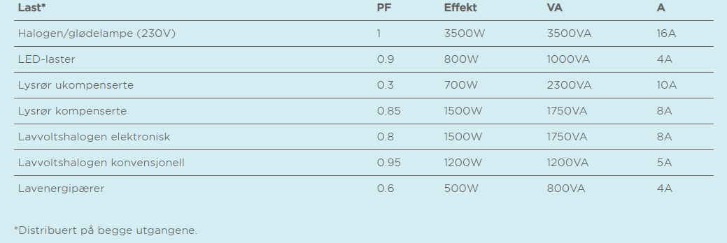 • To reléutganger for kontroll av ikke-dimbar last med en samlet bryteevne på opptil 16 A